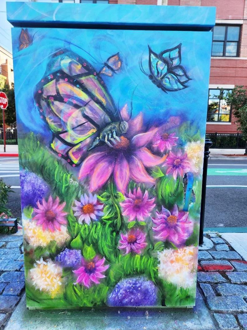 The Project — Promoting pro-environmental behavior through art is core to Optera’s mission. We were commissioned by Shell Recharge and the City of Hoboken to transform their drab EVSE electrical cabinets into beautiful works of art. Along with capturing the City’s character and paying homage to its history, we were challenged to incorporate messages conveying, ‘Resiliency’, ‘Sustainability’ and ‘Vision Zero’ (the City’s special request). The on-going project is expected to be completed in Spring 2025. Some of the below images at locations throughout the city are works in progress and will be updated as artwork is completed.